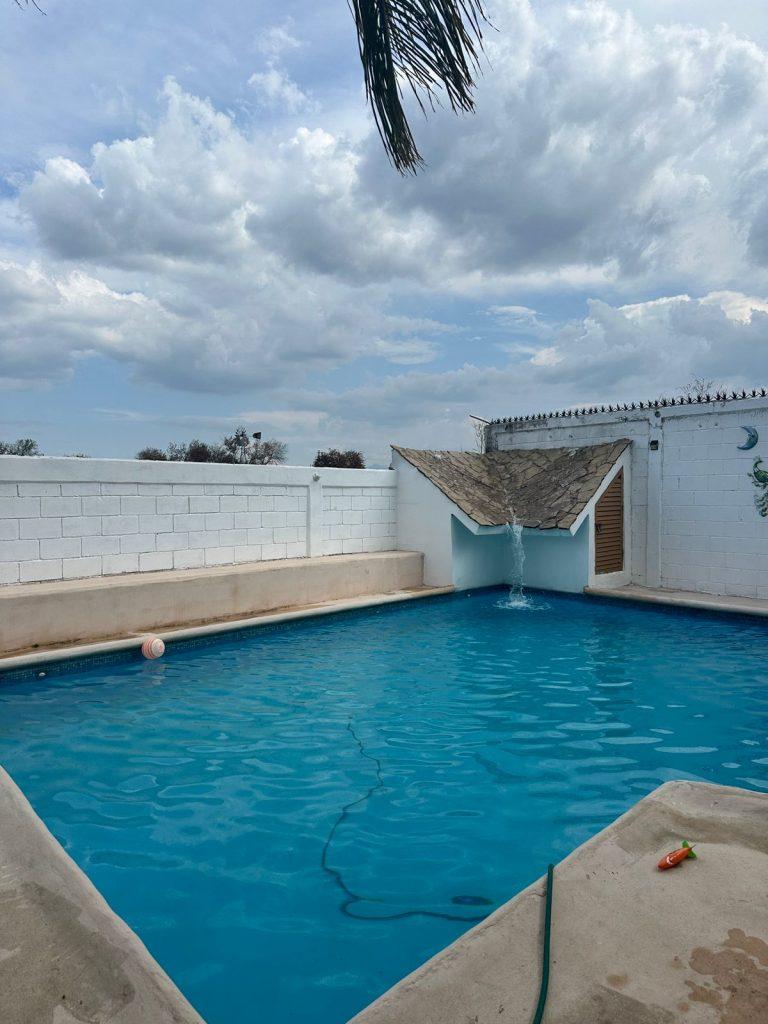 -Alberca de 5×8 m, de 1.50 m de profundidad con cascada.